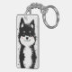 Smiling Black and White Dog Keychain