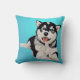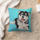 Smiling Bright Husky Puppy against Beautiful Aqua Throw Pillow