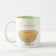 A melon with a mug, and a mug with a melon. This cup shows a smiling cantaloupe character on two sides with customizable text.