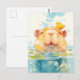 This cheerful capybara postcard is a wonderful choice for sending a "thinking of you" sunshine note or a playful greeting to a friend who loves unique animal companions. You might choose to use this cute card for a summer-themed pool party invitation or to celebrate a fun family afternoon spent at a local aquarium or nature preserve with your loved ones. It also makes a precious decorative piece for a nursery wall or a bright addition to a travel journal as a small token of happiness. This versatile design is also an excellent choice for a housewarming message, a birthday thank you note, or as a heartwarming way to share a message of joy for any situation or event.
