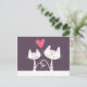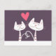 Smiling Cats in Love Purple Postcard