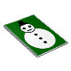 This awesome notebook features a smiling white Christmas snowman with black buttons and a top hat. He looks like one cool gent and would love to help you spread the joy of Christmas this year. The background is a festive shade of green.