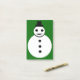 This awesome pad of post it notes features a smiling white Christmas snowman with black buttons and a top hat. He looks like one cool gent and would love to help you spread the joy of Christmas this year. The background is a festive shade of green.