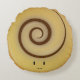 Round Pillow with a cinnamon roll, that’s seen from above and is smiling out at you.