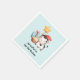 Paper napkins with an adorable image featuring a smiling cow, with a gold star balloon and some cake and a present.