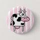 A fun girly animal print design with a smiling cow against a wide striped background in pink and white.