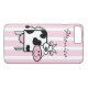 A cute girly design with a light-hearted appeal, this case features a smiling cow against a wide striped background in pink and white. Ready to personalize with your name or monogram.