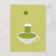 Smiling cup of green tea with tea bag postcard