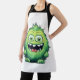 Smiling Cute Green Monster Cartoon Apron