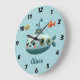 Smiling Cute Submarine with Fish and Bubbles Large Clock