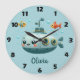 This adorable personalized wall clock features a playful submarine with cheerful, smiling eyes along with bubbles and cute fish. Personalize it with a name for an extra special touch, making it a unique device.