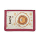 This adorable personalized trifold wallet features a cute, whimsical, playful drawing of a smiling lion with a funny oversized head.