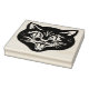 This wood art stamp for your craft projects has the head and face of a smiling vintage Halloween cat with open mouth and fangs.