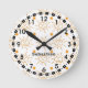 Teach the youngsters how to tell time with this whimsical design featuring a hand drawn sunshine pattern over a white background. The clock face includes large hour numbers and small minute numbers along the outer edge. Customize the name, remove the text or click customize to select a font style, size, and color you like.