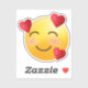 Smiling face with hearts depicts a yellow face with smiling eyes, rosy cheeks, and several hearts floating around its head, as if in a cloud of love. It commonly conveys warm and fuzzy feelings, especially feeling loved or being in love with someone or something.