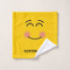 A smiling face, with smiling eyes and rosy cheeks. Custom text.