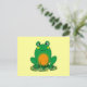Hop into fun with this adorable smiling frog design! Sitting happily on a lily pad against a sunny yellow background, this playful green frog illustration is perfect for pond-themed parties, kids’ birthdays, spring events, or animal-themed stationery. Whether you're creating a unique invitation, thank-you card, or gift tag, this cheerful, cartoon-style frog adds a friendly and lighthearted touch. Ideal for children, frog lovers, nature fans, and anyone who enjoys colorful, character-inspired artwork. Customize it with your own text to make it extra special and perfect for your occasion.
