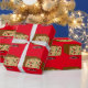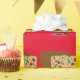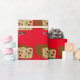 Smiling fruitcake gift wrapping paper with a red (color changeable) background