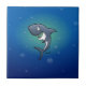 Smiling Funny Shark on Blue Background Ceramic Tile