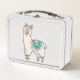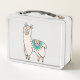 smiling happy llama alpaca cartoon animal drawing metal lunch box