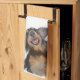 Smiling Long Haired Dachshund Original Art Kitchen Towel
