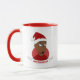 Christmas mug with an illustration of happy smiling African American man with Santa Claus' hat; with editable text template; Christmas holidays design