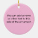 Lightweight, smooth, pure white ornament with nice sheen. Perfect size to be seen from across the room ... and to attract closer inspection! Price was great for ordering enough for the whole family! Clear, bold black design just as requested. Matches the order exactly. Just so nice!