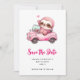 Smiling Pink Sloth Driving a Convertible Save The Date