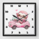 Smiling Pink Sloth Driving a Convertible Square Wall Clock