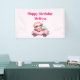 Birthday banner with a whimsical illustration. A pink sloth driving around in a pink convertible. Adorable.