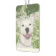 Happy and smiling white, though looks more a cream color secondary to the product material, pitbull terrier photo with wildflowers in the background dog lovers hanging air freshener.