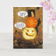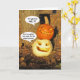 This cute Halloween card shows two smiling pumpkins stacked on top of each other. The orange pumpkin is on top of the yellow one and nearly falling off. The orange pumpkin says, "I'm gonna FALL!!" The yellow pumpkin responds, "Don't complain. Just smile for the stupid picture!" The message inside this card is easy to customize with your personal Halloween wishes, or you can leave the message as shown. The message shown inside says, "Wishing you a lot of fun and big smiles this Halloween!"