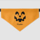 Dress up your pet for the season with this bandana featuring a simple silhouette design of a carved pumpkin face including a nose, eyes and a smiling mouth. The black Jack O'lantern face is placed on an orange background color and there is a personalizable text area for the name of the pet. A classic design that will add that cute Halloween touch to a pet's style.