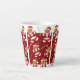 A latte mug with a pattern of smiling gingerbread men in Santa outfits on a dark red and white background. Add this fun, festive, mug to your cart, so that you can enjoy it in your own home.