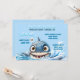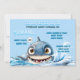 This adorable invitation features the cutest cartoon shark, smiling and swimming through the ocean waves against a pale blue background. Fun, different shades of blue and white text templates make it easy to customize with your party details.