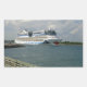 After a port of call visit to the Space Coast, a German cruise ship with a smiling face on her bow makes her way up the Canaveral Channel, towards the Atlantic Ocean.