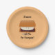 Paper plates with a smiling s'more cartoon character and the words "S'mores for Everyone!". The words are customizable.