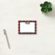 Keep holiday reminders merry and bright with these Smiling Snowman Buffalo Plaid Personalized Post-it® Notes. Featuring a cheerful snowman in a top hat and scarf, accented with rustic holiday pine branches and a cozy black and red buffalo plaid gingham pattern, this design blends farmhouse charm with modern typography. Personalized with your name, these Christmas self-adhesive stationery notes are perfect for quick memos, lists, and seasonal messages. A charming rustic design, they make both a practical tool and a delightful holiday keepsake.