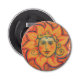 Bottle opener button featuring bright artwork, celestial sun with smiling face, orange and red colors. The sun gives us a light and brings life. It will represent people’s personalities and egos and their spirit. It will make people original and symbolizes the creative force of life. This design will be a great gift for Leo or just for someone very special in your life. Pastel painting, fantasy art / illustration, Russian / slavic folklore. © Clipso-Callipso / Julia Khoroshikh