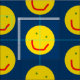 A green-eyed yellow suns smiling on a medium blue background. You may change the background color. Feel free to contact me for assistance in resizing the graphic.