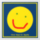 A green-eyed yellow sun smiling on a blue background. Add your own text. You may change the color of both the text and the background. You may also change the border color or remove it completely.