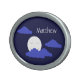 It's nighttime. The moon is smiling and happy. The sky is a beautiful dark blue with puffy, lighter blue clouds. It's going to be a nice night. Keep the name, change it, or delete it. You can even add more words. You can also alter the appearance of the letters. Original work: (c) Sharon Lee Hudson. All rights reserved.