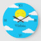 Smiling Sun with Puffy Clouds Large Clock