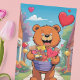 Celebrate love and joy with this cheerful teddy bear poster. Featuring a happy bear carrying a colorful basket of gifts and surrounded by playful hearts, this artwork is perfect for Valentine’s Day décor, kids’ rooms, or as a sweet gift for someone special. A vibrant and heartwarming illustration that spreads happiness wherever it’s displayed.