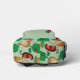 Cheerful green bell pepper, chili pepper, onion and carrot on a green polka dot background. Your name on the front pocket with a cheerful chili pepper.