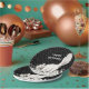 This paper plate has a smiling white cat walking on piano keys while winking on a black background with various white music notes. Customise the Happy Birthday text with the templates.