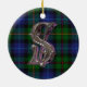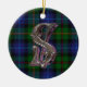 Ornate monogram letter S ornament, with the Smith clan tartan plaid as a background. Great looking family heirloom ornament. Makes a great gift ornament and decoration for other uses around the house.