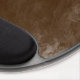 The plastic backing is nice and sturdy. The grippy pads underneath keep the mouse pad where I put it on my table. The pad the mouse sits on is cut well to fit the backing. The wrist pad is perfectly soft, supportive, and thick. I'm left-handed, and this mouse pad works just as well for me as it does for my right-handed friends. I'm the designer of HippieClecticHope products. I'm blown away by how well my intricate fractals turn out on the tangible items in the Zazzle Marketplace. This particular mouse pad ***appears*** like a 3D object... A mathematically-engineered rainbow black opal, inlaid under transparent fabric...