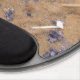 The plastic backing is nice and sturdy. The grippy pads underneath keep the mouse pad where I put it on my table. The pad the mouse sits on is cut well to fit the backing. The wrist pad is perfectly soft, supportive, and thick. I'm left-handed, and this mouse pad works just as well for me as it does for my right-handed friends. I'm the designer of HippieClecticHope products. I'm blown away by how well my intricate fractals turn out on the tangible items in the Zazzle Marketplace. This particular mouse pad ***appears*** like a 3D object... A mathematically-engineered rainbow black opal, inlaid under transparent fabric...