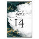 Wedding Table Number | Modern Smokey Teal Sapphire Watercolor Geode by the BarefootBride™ - Modern Wedding hand painted beautiful watercolor illustration in shades of deep teal and white with sparkling gold veining highlights has the appearance of a teal sapphire gem geode - A combination of script calligraphy combined with a minimalist, contemporary style text layout makes it a trending style wedding suite. This is part of a wedding stationery collection with matching wedding accessories.